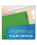 Make your open-shelf filing system work for you with color coding. Colorful folders have reinforced double-ply end tabs that stand up to frequent use. Each tab features scored lines to aid in label placement. Heavyweight paper stock. Acid-free.