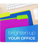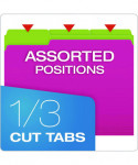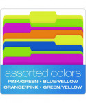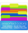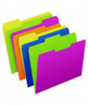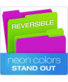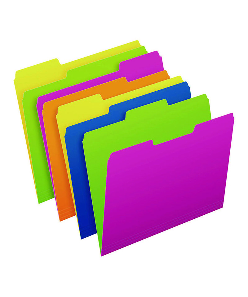 You get a total of five colors among four folders, but you have eight combinations with the reversible design. Folder colors are green/yellow, pink/green, orange/pink and blue/yellow. Turn the folders inside-out if you need to change-up the order of your system for convenience. Standard 11-point construction works best for ordinary computer paper, glossy brochures and photos. Each folder can expand to hold up to 150, 8.5" x 11" pages, which amounts to a medium-sized report. These folders work well for employee files, daily transaction records, everyday financial statements, signed documents and printed correspondence. Staggered tabs let you label each folder appropriately, including hand-writing words, letters or numbers on folders. Alternatively, go for a professional look by printing customized labels on your computer. The expandable filing system gives you complete freedom to organize your desktop, file cabinets, archival storage or employee documents.