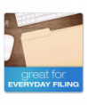 Perfect for everyday filing tasks. Rigid manila stock and durable tabs make these folders ideal for stock-up shopping when you're looking to fulfill your document filing needs. Undercut front cover simplifies labeling while making folder identification easy.