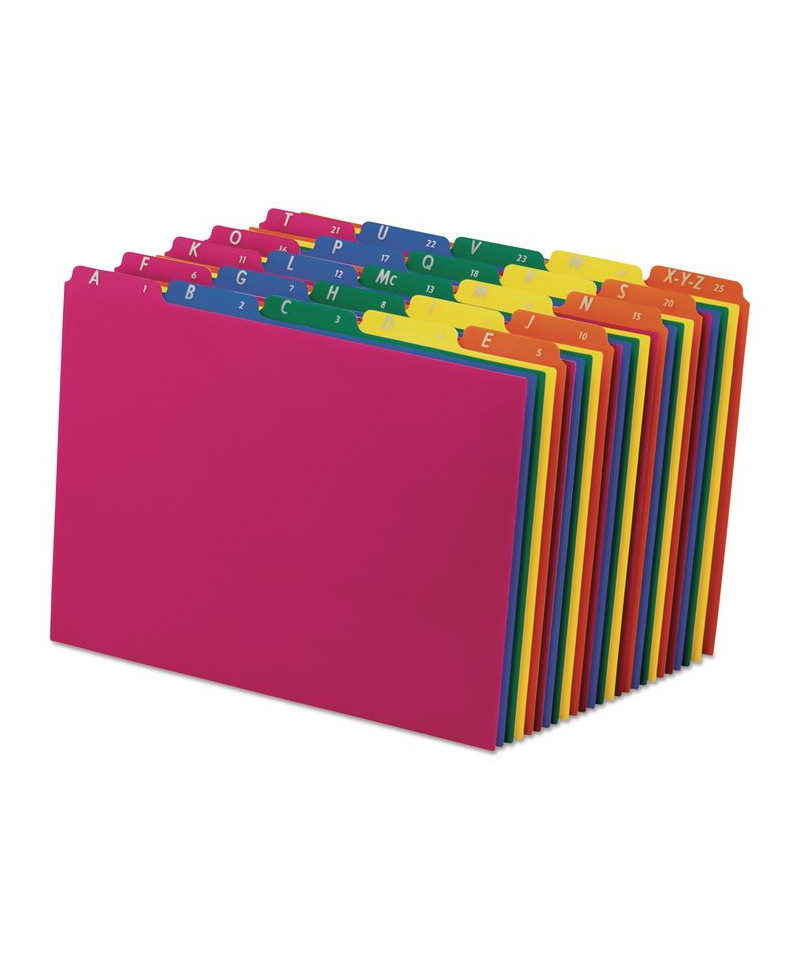Organize files with colorful guides featuring preprinted top tabs. Tear-, wear- and moisture-resistant polypropylene. Assorted colors: blue, green, magenta, orange and yellow.