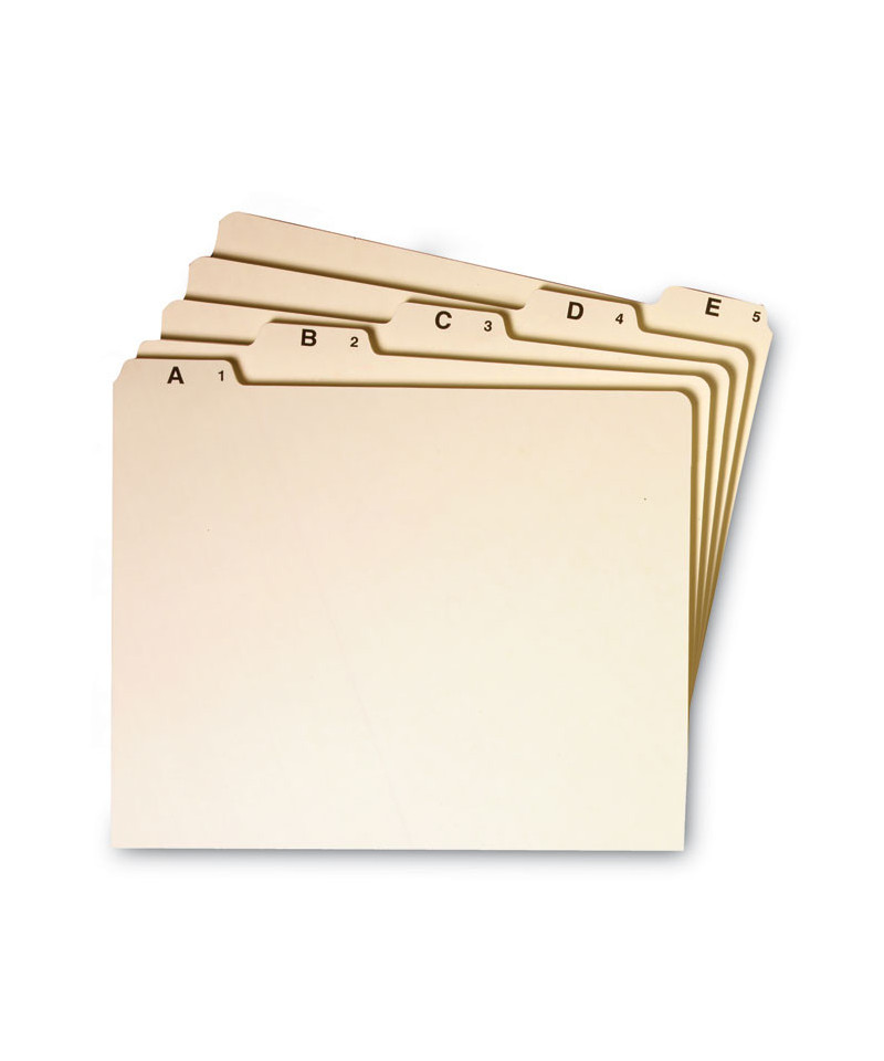 Alphabetic Top Tab Indexed File Guide Set, 1/5-Cut Top Tab, A to Z, 8.5" x 11", Manila, 25/Set