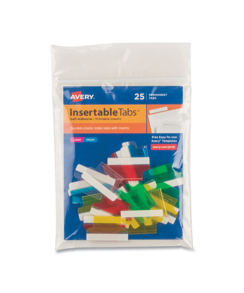 Pre-cut plastic tabs with inserts for fast filing. Easy to customize with free templates from Avery Design & Print. Handwrite or print inserts for laser and inkjet printers.