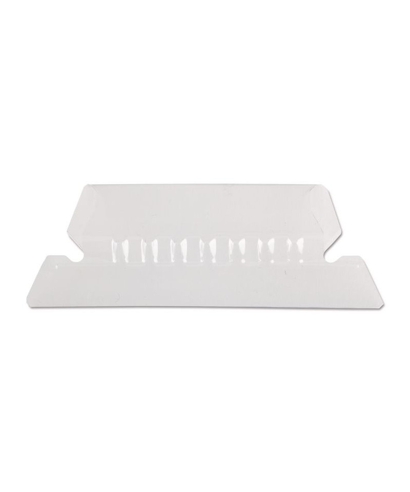 Add a colorful touch to your organization with these transparent tabs that are color-matched to Pendaflex® hanging file folders. Blank white inserts are included that hold up to three lines of type. Pliable plastic design makes insertion fast and simple. Stagger the position of tabs to keep each file heading in full view!