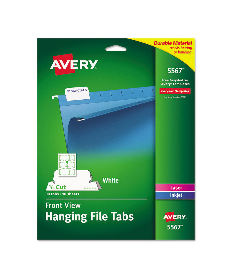 Spruce up your filing system with these Printable Hanging File Tabs. It's a cinch to create an attractive coding system for your files with free easy to use templates from Avery Design & Print. All that's left to do is print. 8 1/2 x 11 sheets for laser and inkjet printers. Sturdy tabs resist tearing and bending plus they feature a top-view design so you can find files at a moment's notice without using separate plastic holders. Here's looking at you, folders.