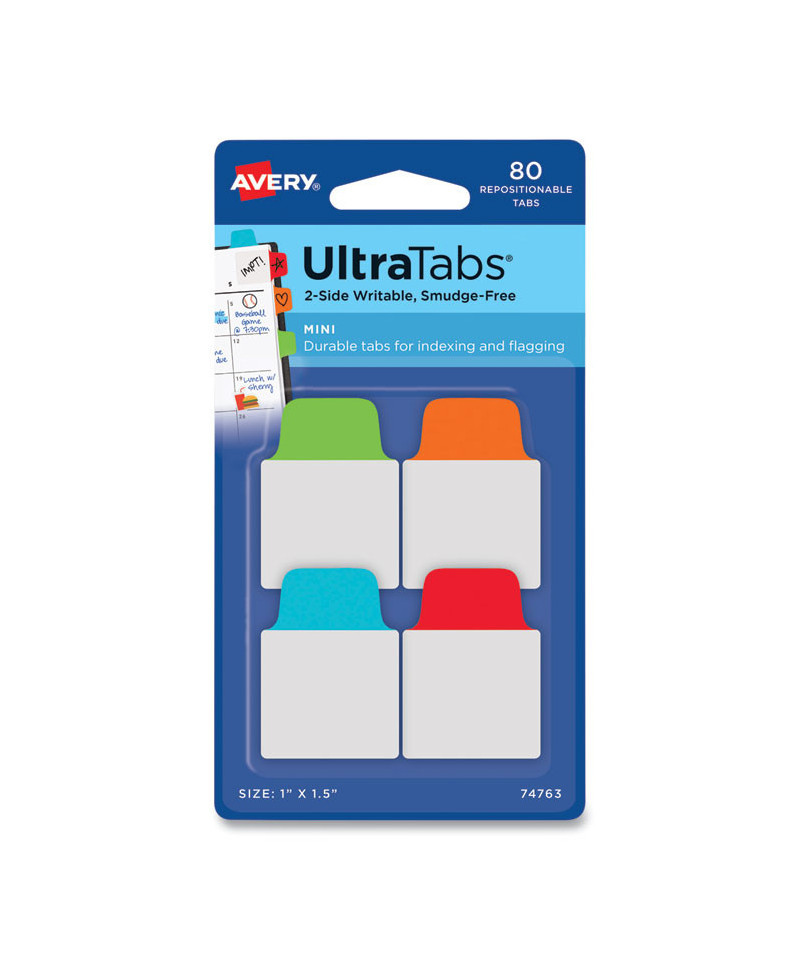Ultra Tabs Repositionable Tabs, Mini Tabs: 1" x 1.5", 1/5-Cut, Assorted Colors, 80/Pack