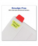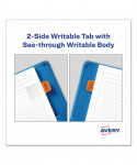 Durable, repositionable and reusable tabs are writable on both sides with a clear adhesive body so you can see text underneath. Tabs stick securely and remove cleanly with no residue. Write on tab and body.