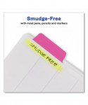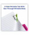 Durable, repositionable and reusable tabs are writable on both sides with a clear adhesive body so you can see text underneath. Tabs stick securely and remove cleanly with no residue. Write on tab and body.