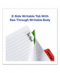 Durable, repositionable and reusable tabs are writable on both sides with a clear adhesive body so you can see text underneath. Tabs stick securely and remove cleanly with no residue. Write on tab and body.