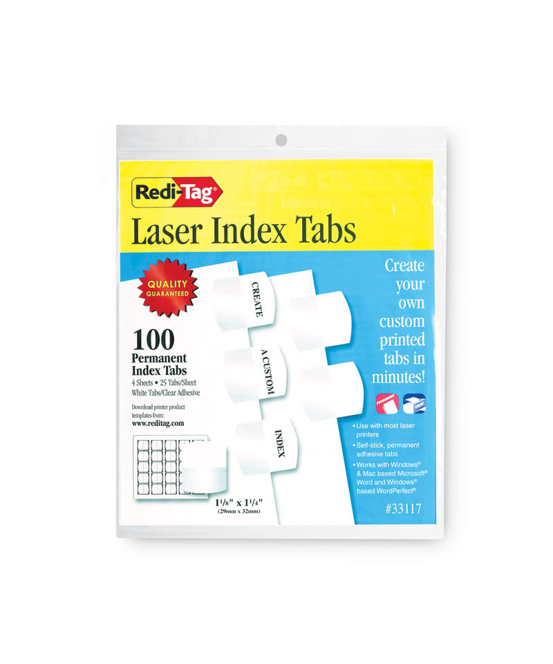 Create permanent professional-quality indexes. Sturdy plastic self-adhesive tabs attach to any page. Templates compatible with Windows® version of WordPerfect® and Microsoft® Word.