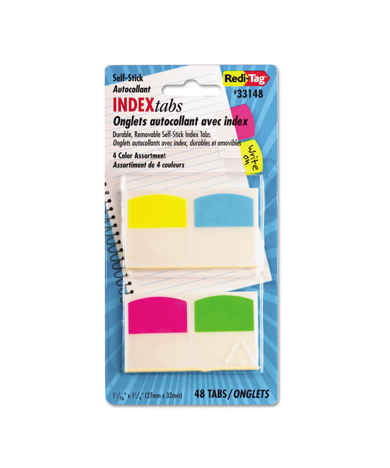 Make organizing your documents and files easy with durable, removable tabs. Write-on tabs accept pen, pencil or permanent marker. Heavy-duty plastic tabs-will not curl or tear. Self-stick adhesive is repositionable and removable. Large writing area and bright colors for visibility or white for maximum readability.