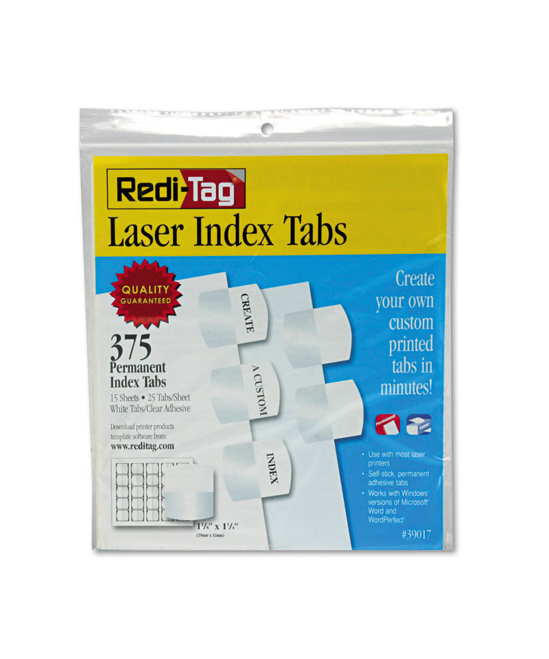 Create permanent professional-quality indexes. Sturdy plastic self-adhesive tabs attach to any page to organize and index in a flash to keep you organized. Templates compatible with Windows® version of WordPerfect® and Microsoft® Word. Use them on divider sheets or any size bound material-index your specific titles. Will not tear or curl.