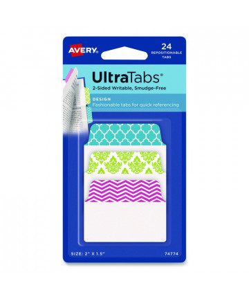 Ultra Tabs Repositionable Tabs, Margin Tabs: 2.5" x 1", 1/5-Cut, Assorted Neon Colors, 48/Pack