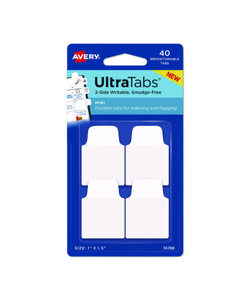 Ultra Tabs Repositionable Tabs, 1/10-Cut, 1" Wide, White, 40/Pack