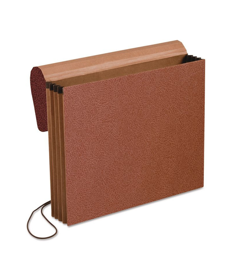 Organize and store your documents in wallets made of red fiber stock with a coated, leather-like finish. Flexible, wraparound elastic cord closure with brass eyelet to prevent cord tear out.