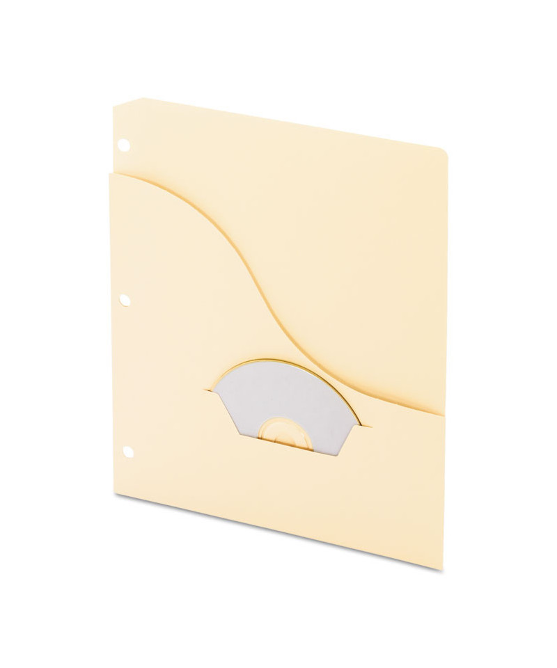Smart design delivers great looks and fast access. Stylish front cut provides greater view of contents. Large pocket holds letter-size documents, notes and records. Die-cut storage pocket holds a CD, business cards or index cards. 11 pt. stock. Acid-free.