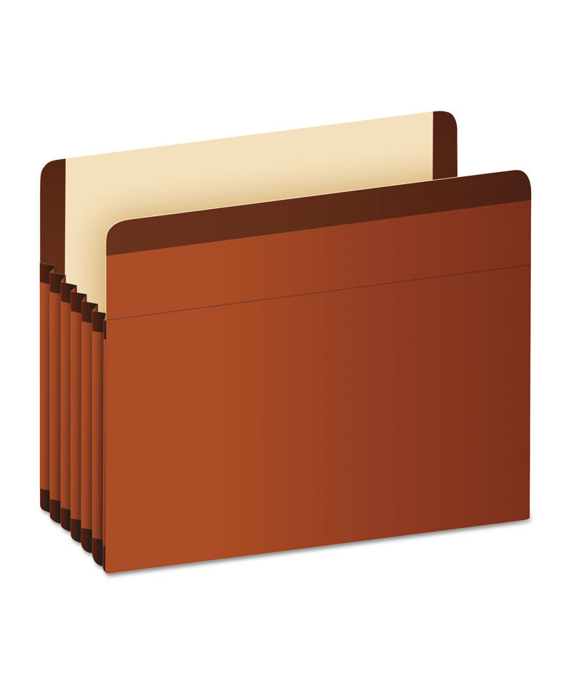 These file pockets are built to last with strong construction that resists rips and tears. Top, bottom, corners, main stress points and fully lined gussets double-reinforced with rip-proof tape. Straight cut tabs. Water-resistant 14 pt. red fiber; Manila lined front and back.