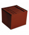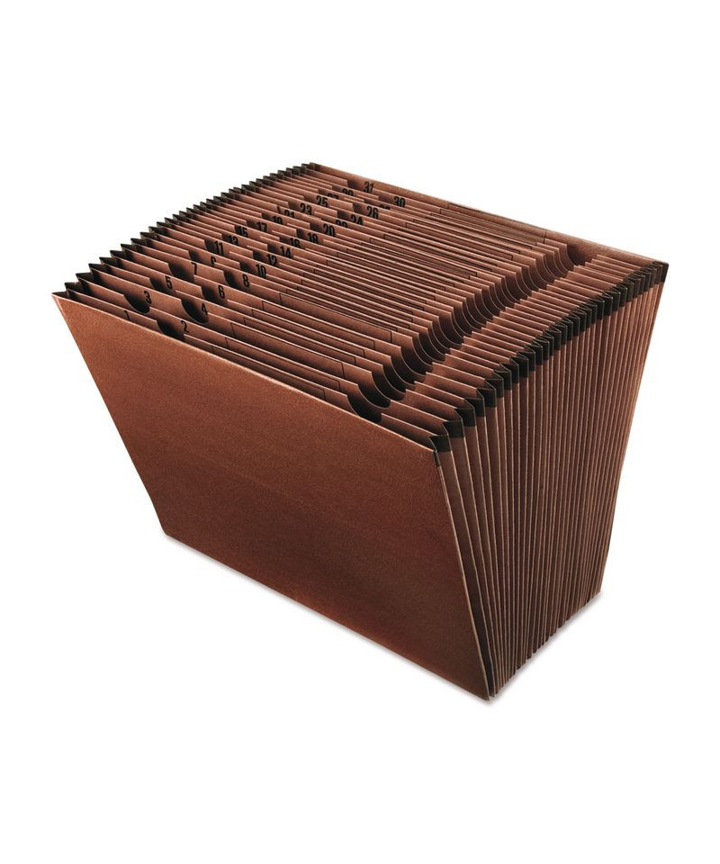 Hard-working and an ideal addition to any office. Leather-look red fiber expanding file features an open top for quick filing and access to filed contents. Convenient preprinted dividers separate papers into easy-to-find categories. Gusset tops reinforced with rip-proof tape to prevent bursting and tearing.