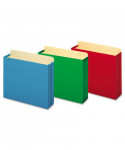 Unique file pocket design has a raised gusset height so that the gussets ride along the file cabinet rails eliminating tearing and damage. 9 1/2" high gussets are reinforced with rip-proof strips with Dupont™ Tyvek® material along the top and bottom corners. Extra-thick, 22 pt. outer panels. Full tabs.