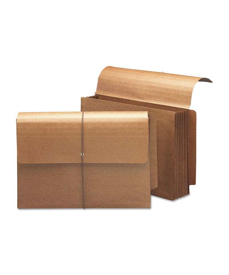 Top tab file folders fit neatly inside without bulging out the side gussets. Protective flap with elastic cord closure ensures that contents stay put. Works with your existing shelf filing system. Double thick front and back panels for extra strength. Expands up to 5.25" for greater storage capacity. Full-height redrope gussets, with rollover tear resistant material reinforcement at top for durability.