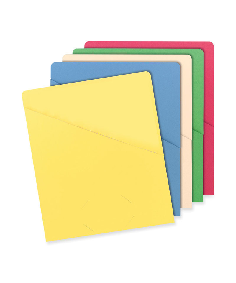 Keep documents safe, organized and within reach. Smead's Organized Up Notes Slash File Jackets are designed to help you keep files organized. These file jackets have an angled front for viewing documents while keeping papers tidy. Sealed on the sides and bottom, these pockets keep your papers secure and in order. Die cut to hold business cards, these file jackets are excellent for real estate, presentations and sales pitches. A simple change can boost your productivity and improve your organization. Contain post-consumer recycled material.