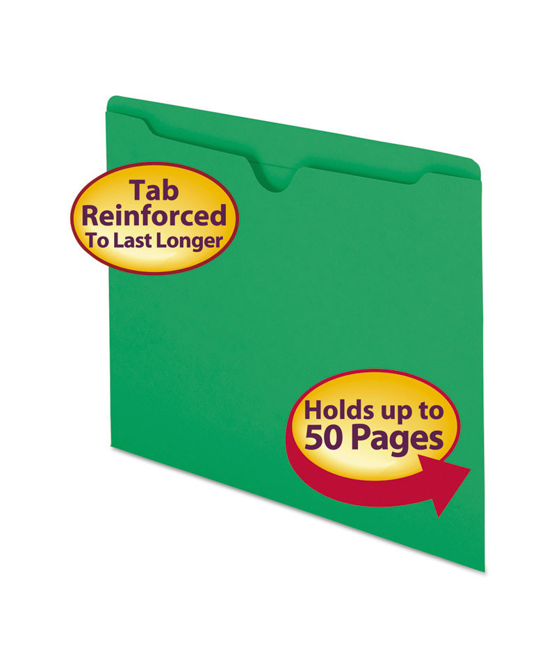 These bright jackets have a full-height side gusset to keep materials from slipping out. Great for transporting files in and out of the office. Closed on three sides to keep paper and other documents protected and secure. Reinforced straight-cut tab provides added durability for frequently used files. Letter size (11.75" W x 9.5" H) file jackets feature reinforced straight-cut tabs.