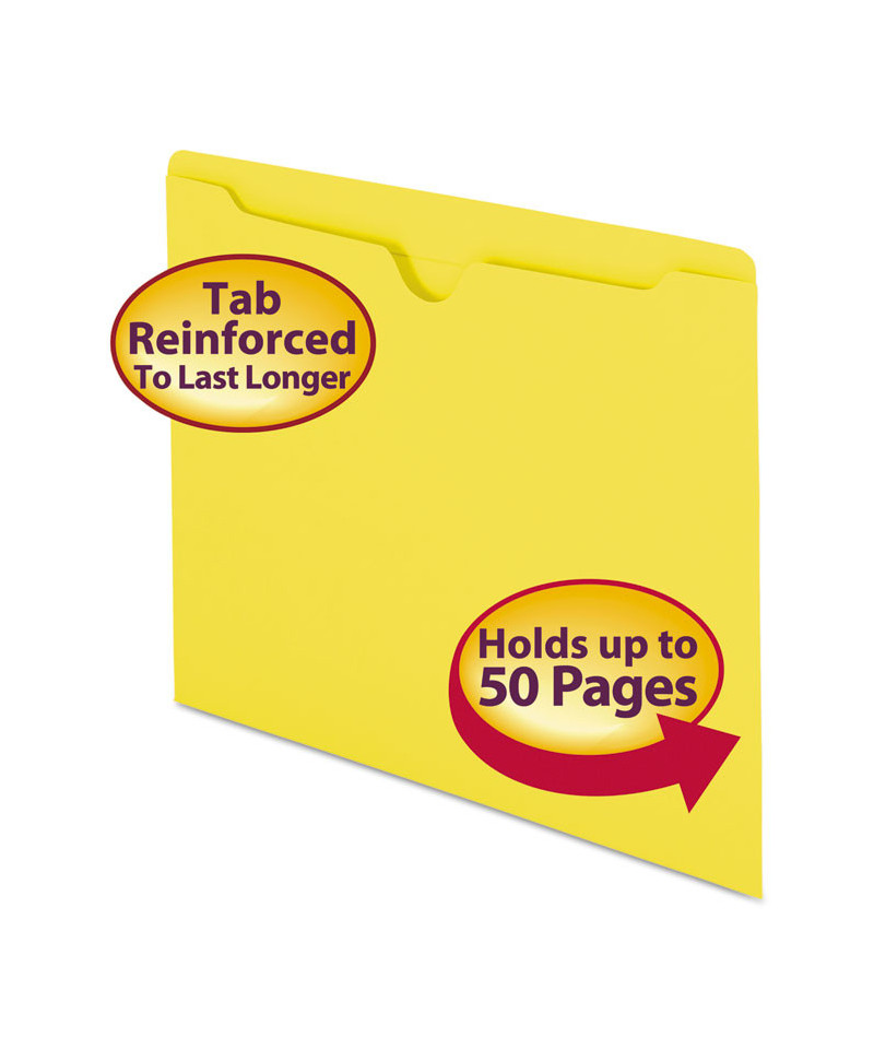 These bright jackets have a full-height side gusset to keep materials from slipping out. Great for transporting files in and out of the office. Closed on three sides to keep paper and other documents protected and secure. Reinforced straight-cut tab provides added durability for frequently used files. Letter size (11.75" W x 9.5" H) file jackets feature reinforced straight-cut tabs.