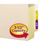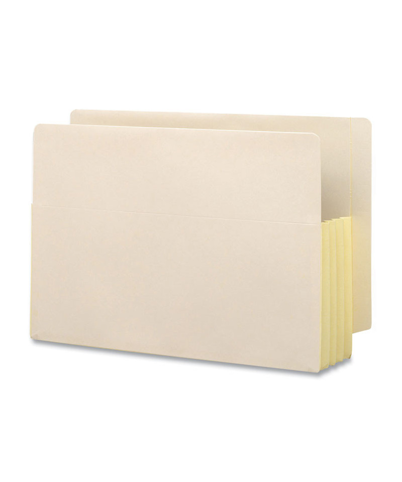 Economical choice for filing depositions, lengthy government reports or other paper-intensive records. Fully lined gussets reinforced with tear resistant material at the top adds strength to the point of greatest wear. Straight-cut tab for color-coded indexing. Made of manila stock great for everyday use. Pockets will hold standard top tab folders without bulging.