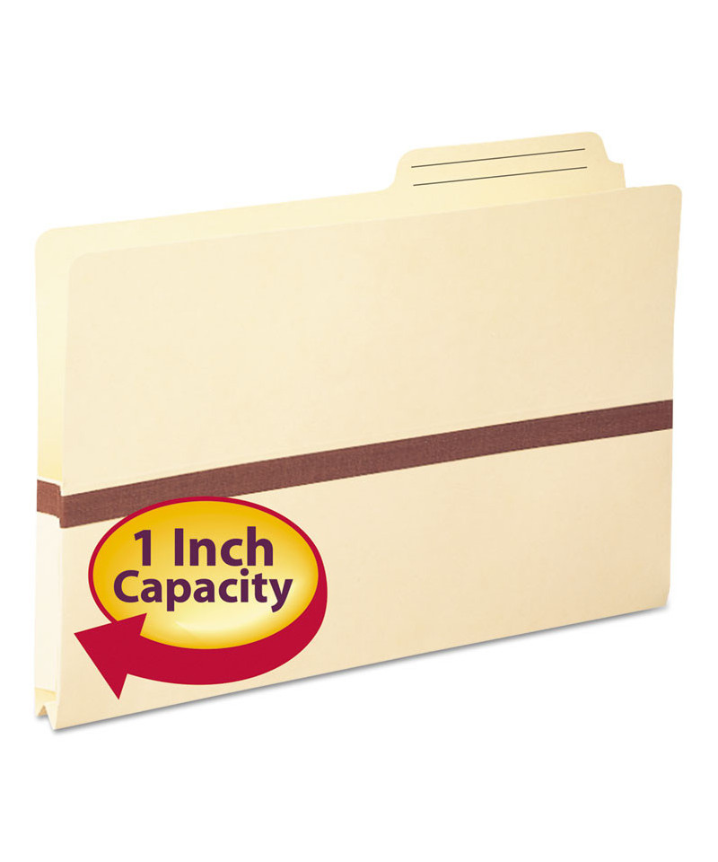 Keep bulky files standing straight in file drawers and storage boxes. Preprinted lines on tab for quick labeling. Expands up to 1" for greater storage capacity. Durable gussets reinforced with tear resistant material for extra durability. 2/5-cut printed tab, right position. 4.5" high gusset, bottom corners open. Made of 11 point manila stock for everyday use.
