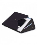 A trendy yet professional way to keep you organized. Great for customer meetings and working away from your home office. Features a soft cloth exterior with matching sewn stitching, black cloth interior and snap closure. Expands up to 2" to allow for multiple storage options, such as a tablet or small laptop, phone, lined note pad or journal.