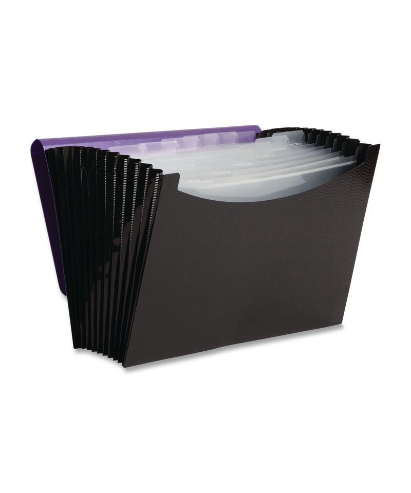 Elevate your document organization effortlessly with Smead Poly Frequency Expanding File. Featuring stylish yet professional embossed pattern and fully expanding bottom, it stands freely on a desk to allow easy access to contents. Durable poly material resists tears and repels moisture. Includes white customizable tab inserts and a protective flap secured by an elastic cord and button closure. Streamline your filing process, save time, and bring order to your space. Ideal for home, office, or classroom use, this organizer is acid and PVC-free. Choose Smead for efficient, reliable, and sustainable document organization – over a century of heritage, craftsmanship, and innovation.