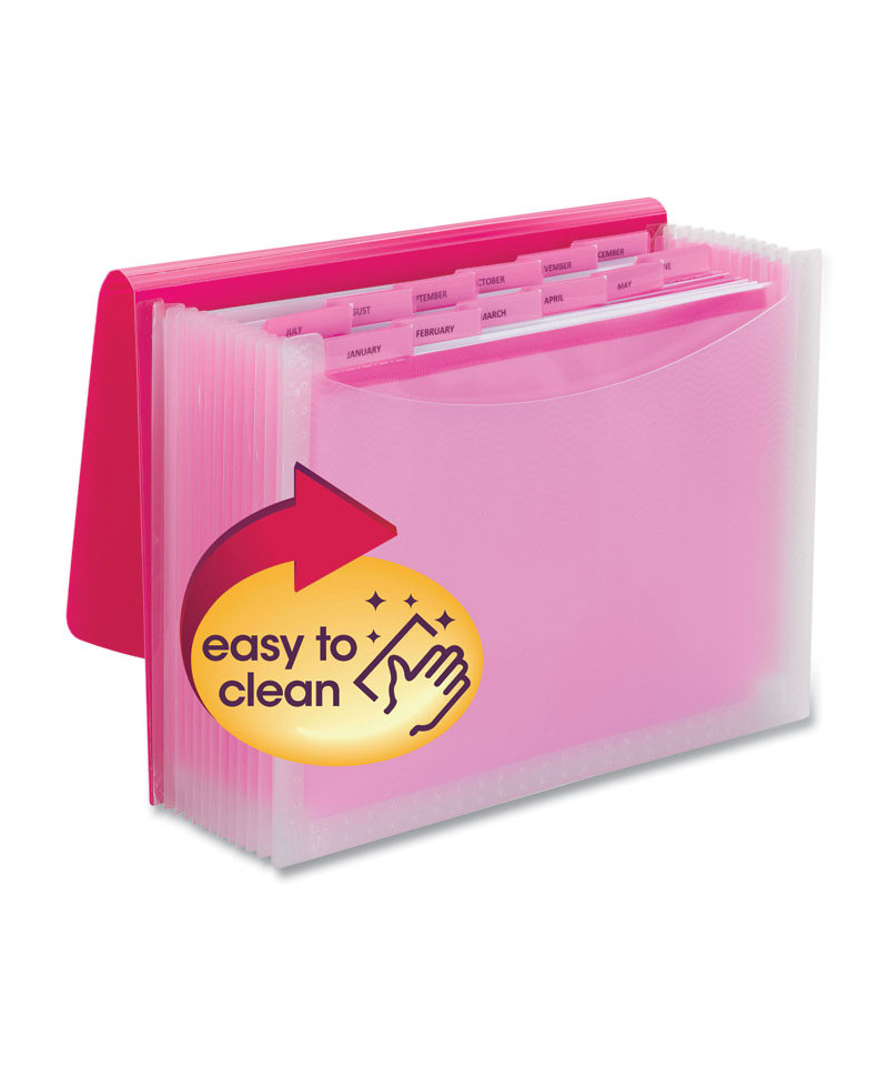 The Smead Poly Frequency Expanding File features a unique embossed wave pattern or "frequency" design, lending a splash of personality to organization. Features 12 dividers to allow for organizing by day of the week, project or task. Bottom expands to stand upright on desk for easy document insertion and removal. Durable tear and water-resistant poly material is easy to clean. Part of the Vibrant Line.