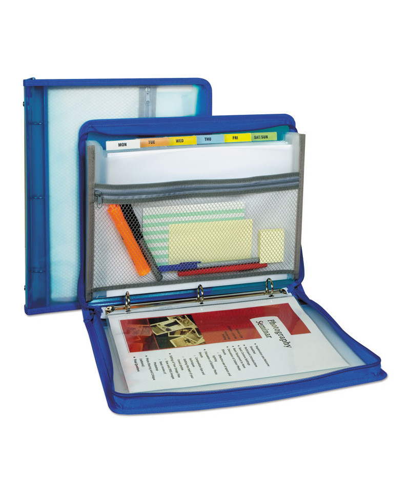 Featuring a three-ring binder, seven pocket expanding file and zippered pencil pouch, this versatile organizer stores documents, paperwork and more. Use the ring binder to store 8.5" x 11" documents that are hole punched or placed inside a sheet protector. Loose papers can be organized in the seven pocket, six tab expanding file with preprinted tab inserts. The mesh pencil pouch is perfect for storing small objects such as pens, paper clips and more. 2" overall expansion. 1" ring capacity. For added security, the entire file is protected with a zipper closure.