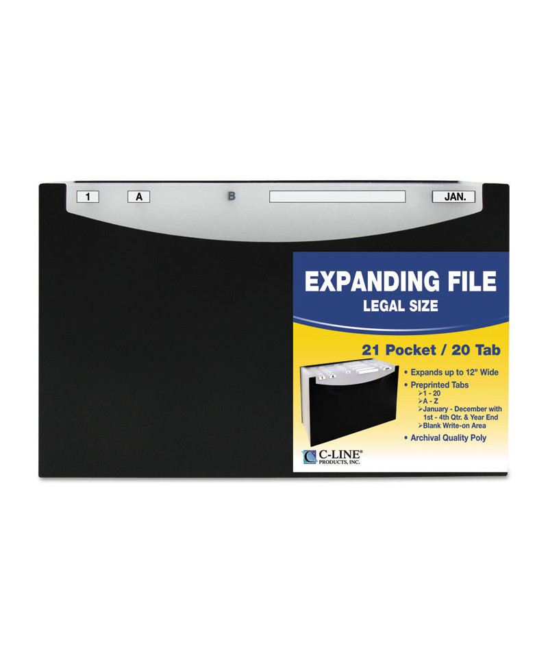 Eliminate stacks of paperwork from piling up on your desktop with the help of the stand-up style expanding file. Instead, place the stand-up file directly on your desktop to help keep the paperwork visible and accessible at all times. Expanding file keeps documents organized. Open top, stand-up design provides easy access. Gusseted pockets expand to hold important letters and documents. Dividers feature preprinted labels and write-on areas to add custom labels. Made from acid-free polypropylene. Holds up to 1,000 sheets of paper. For 8.5" x 14" document storage.