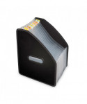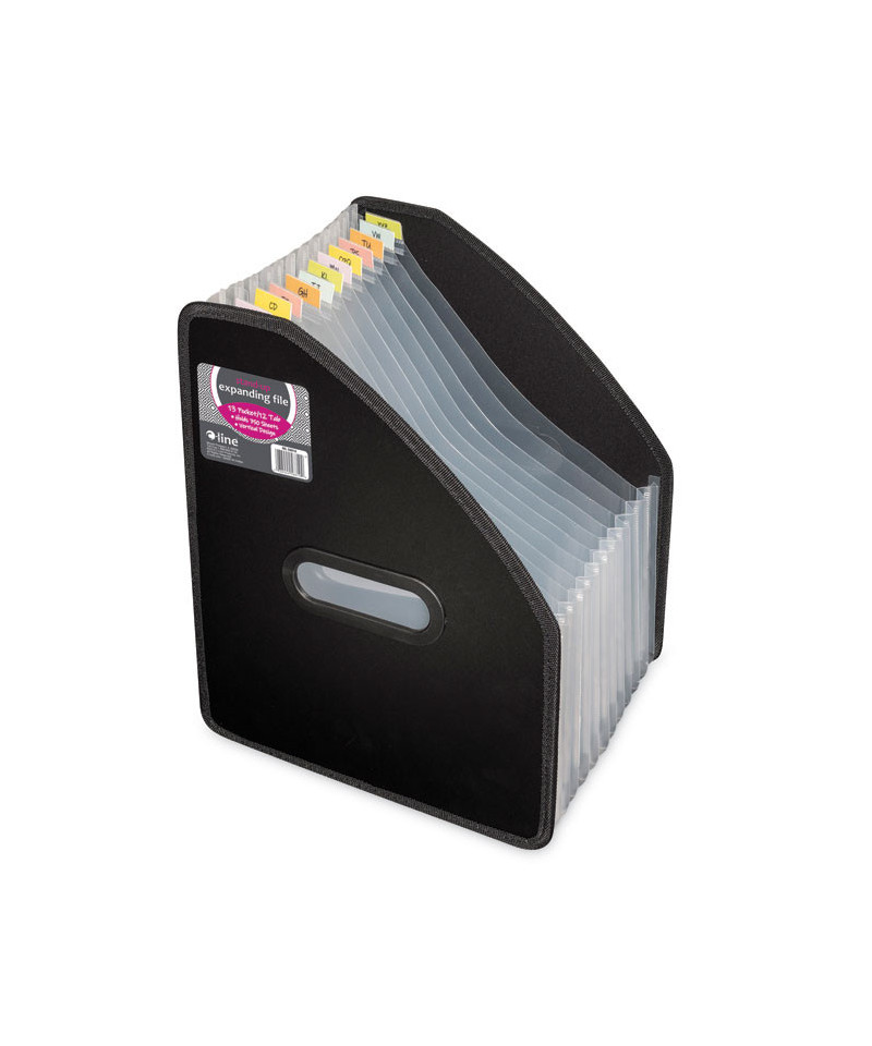 Take up less room on your desk by organizing papers, manuals, magazines and more vertically! Features stand-up design for easy access and extra expansion. Cut-outs on each side make it simple to transport. Expands up to 10" wide to maximize on storage capacity. Divider tabs are on top for trouble-free organization. Includes preprinted tab inserts that let you identify contents fast. Organize 8 1/2" x 11" documents within the 13-pocket file. Made from acid-free polypropylene.