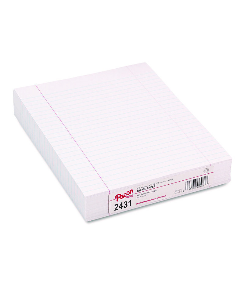 Composition Paper, 8" x 10.5", Wide/Legal Rule, 500 Sheets/Ream
