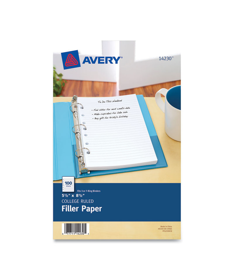 Mini Size Binder Filler Paper, 7-Hole Side Punched, 5.5 x 8.5, College Rule, 100/Pack