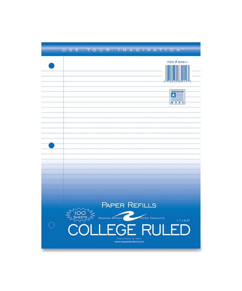 Founded in 1887 by D.M. Bare, Roaring Spring Paper Products has been an integral part of the Roaring Spring community for more that 130 years. Employing over 200 people, the company prides itself on remaining a family-owned, American small business. They offer a variety of high-quality looseleaf filler paper to suit your needs. Paper is smooth, 15# white with a red margin line for easy reference, 3-hole punched for binders, and comes polywrapped for protection.