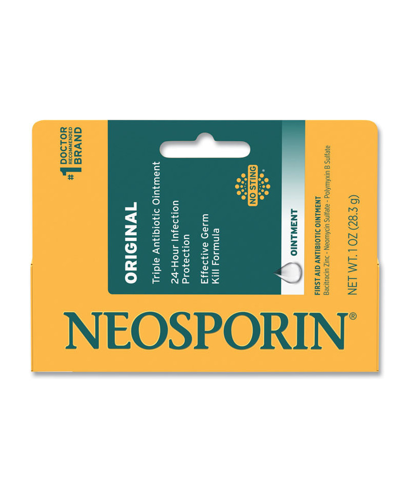 Neosporin Original Antibiotic Ointment provides long-lasting infection protection and minimizes the appearance of scars. Made with Bacitracin Zinc, Neomycin Sulfate, and Polymyxin B Sulfate, this first aid antibiotic ointment helps prevent infection in minor cuts, scrapes, and burns. From the number-one doctor-recommended brand, this antibiotic ointment contains a unique HeliDerm Technology that provides a nourishing environment for skin. To treat minor wounds, simply apply a small amount of the 24-hour infection protection antibiotic ointment and scar minimizer on the affected area one to three times daily.