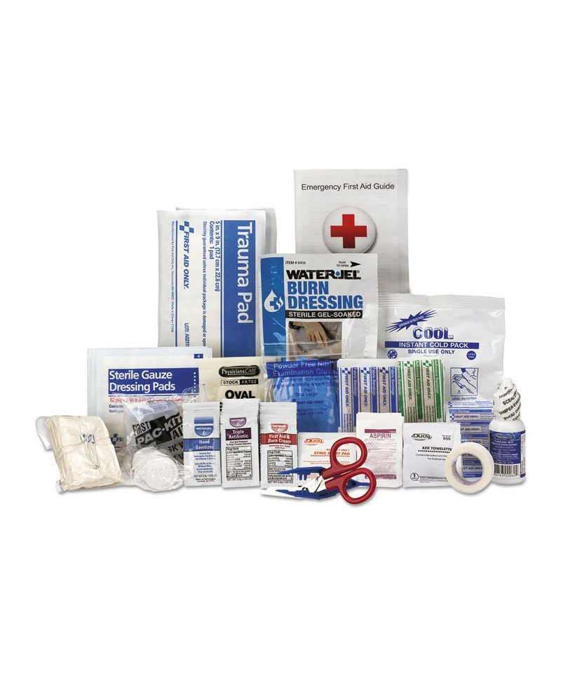 Convenient first aid kit refill is designed to deal with most common types of workplace injuries. Sufficient to treat 25 people or more. Complete refill for 25 Person Bulk ANSI A+ First Aid Kits (sold separately).