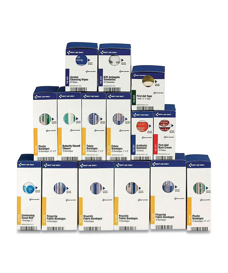 Add to cart ANSI Industrial First Aid Station Refill Packs, 418 Pieces $114.60 Convenient refill contains all the necessities to replenish your first aid kit. Sufficient to treat 75 to 100 people.