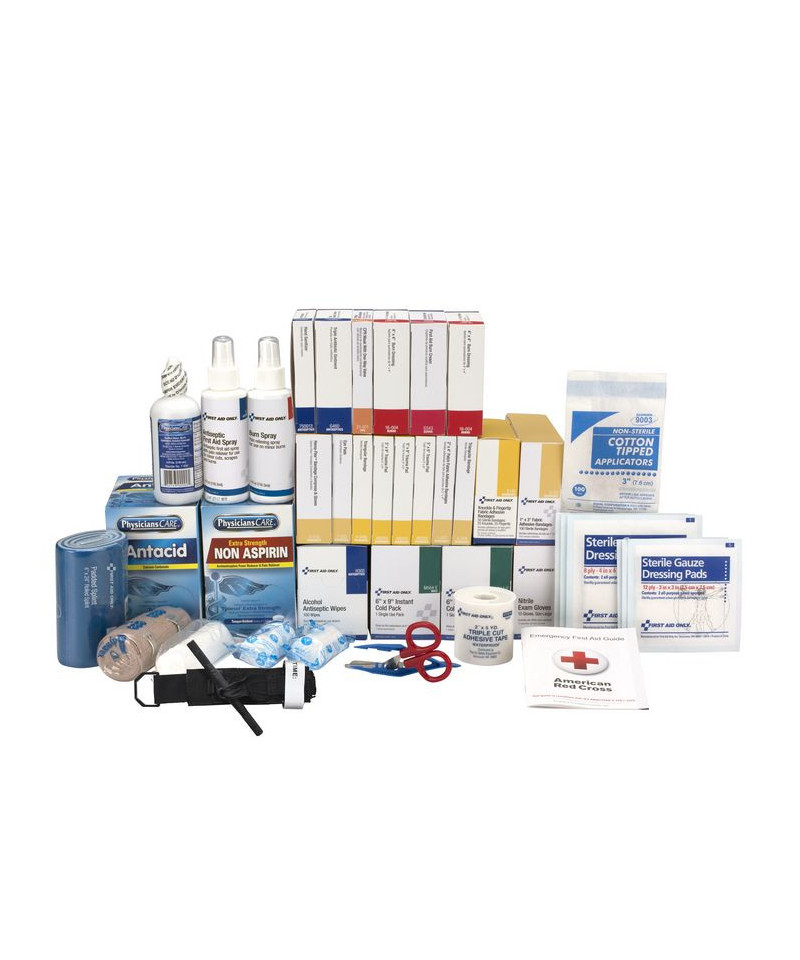 The ANSI B kit refill includes essential first aid supplies and over-the-counter medication for treating injuries occuring in more complex or high-risk work enviornments. The contents will refill a three-shelf cabinet sufficient to support 100 people. Stay ANSI and OSHA compliant at your manufacturing facility, warehouse and industrial site with this 687-piece first aid cabinet refill.