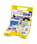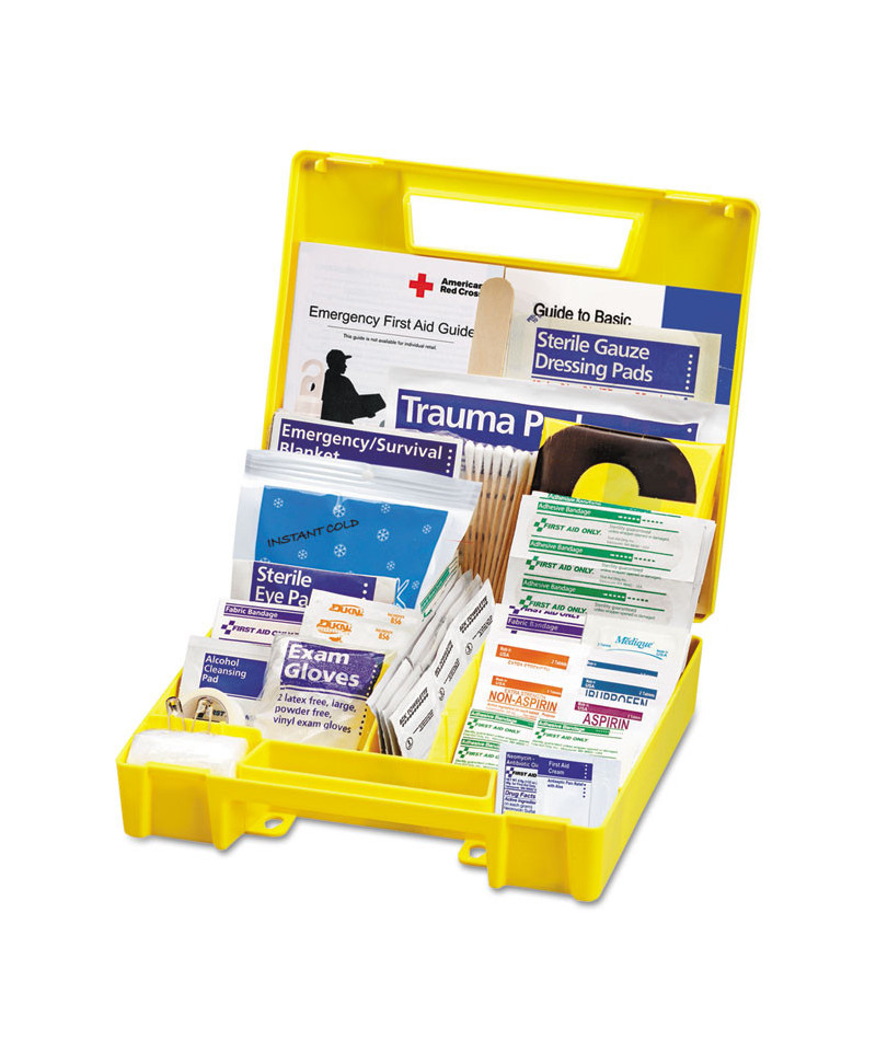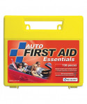 Portable essentials first aid kit allows you to be ready for all potential emergencies on the road. Our new generation of hard kit is specially designed for easy access, to save time and frustration in the midst of emergency situations. Economical kit in a convenient size for safety on-the-go. Includes First Aid Guide/accident report form, vinyl gloves, insect sting relief, assorted bandages and gauze dressings, antiseptics, ointments, burn cream, and more! Compact, hard-case kit is an excellent choice for stowing in your car, in case of emergencies.