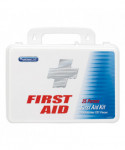 You'll be prepared for emergencies indoors or outdoors with this reliable kit that features first aid products. Housed in a plastic case with a weatherproof seal. Case features a handle for easy transport and is also wall mountable for easy visibility and access. Kit contains a variety of quality products to care for cuts, scrapes and bruises, minor eye irritations, personal discomfort and minor burns. Dust- and moisture-resistant with long-lasting hinges and two latches.