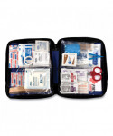 Whether at work or play, be prepared with quality convenient, efficient care on-the-go. Contains essential first aid items needed to treat most incidents and accidents in and out of your office. Durable, portable soft case. Clear pouches organized for quick easy access. Includes adhesive bandages, gauze pads, antibiotic ointment, sting relief pads, tape, gloves and more.