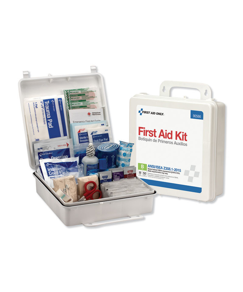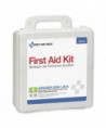 Ensure employee safety with a convenient, handy plastic first aid kit, containing key items for office, vehicle and worksite kits. Supplies feature bilingual labels in English and Spanish for easy reading in an emergency.
