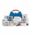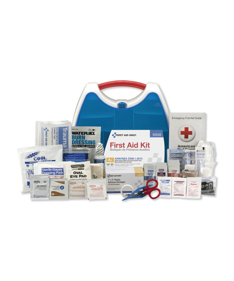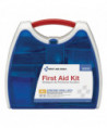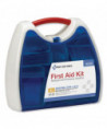 Convenient kit comes in an innovative plastic case with a carrying handle. Comes complete with all of the items needed to clean, treat and protect against a variety of everyday occurrences. Transparent door allows you to find items quickly in an emergency. Kit is conveniently wall mountable.