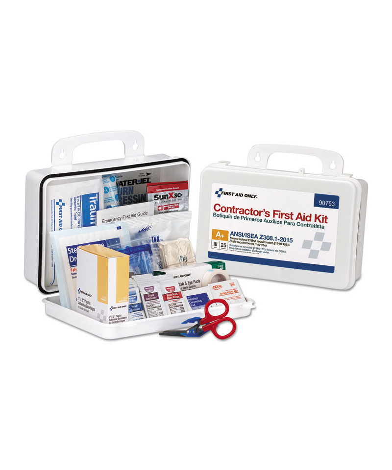 Convenient first aid kit in a weatherproof case. Comes with a carrying handle and is wall mountable. Contents exceed the 2015 ANSI Class A+ requirements.