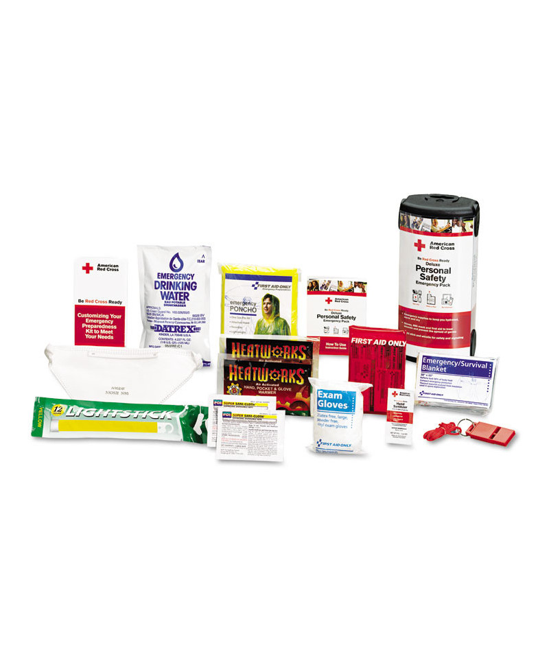 One-person emergency pack to take on the go. These basic supplies could prove vital in an emergency. Supplies will keep a person warm and dry, help them stay hydrated, and treat minor injuries. A lightweight, modular design makes it easy to stow, grab, and carry. Tear-resistant nylon backpack has plenty of room for personal items.