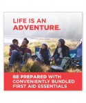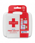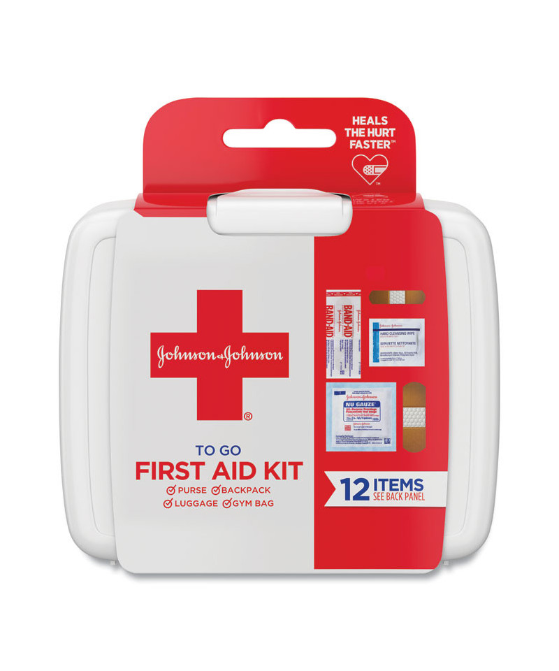 Be prepared while you're on the go with this Johnson & Johnson First Aid to Go! travel emergency first aid kit. Available in a durable plastic case, it contains 12 essential first aid items and wound care supplies and is the perfect mini size to carry in a purse, backpack, gym bag, car or luggage. This portable mini first aid kit contains two 5" x 7.75" Johnson & Johnson Hand Cleansing Wipes, four 2" x 2" Band-Aid Brand Gauze Pads, two 0.75" x 3" Band-Aid Brand Flexible Fabric Adhesive Bandages, and four 0.63" x 2.25" Band-Aid Brand Flexible Fabric Adhesive Bandages. It's ideal for travel, camping trips, vacations, sporting events, or to keep on hand in the car.
