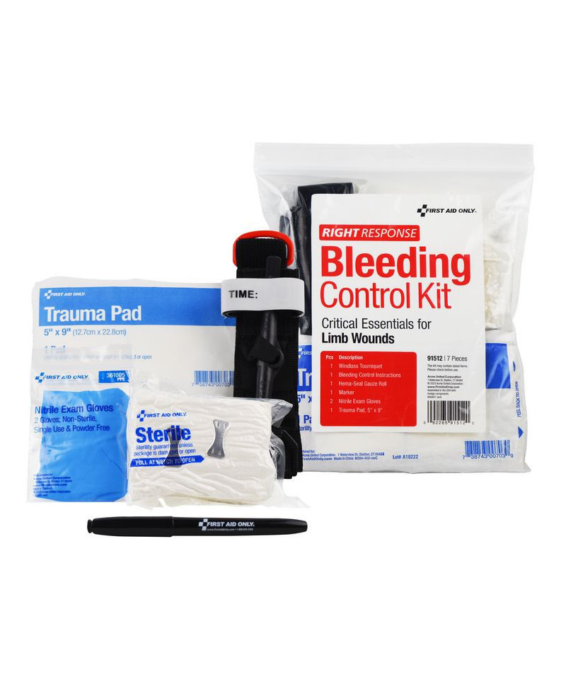 This bleeding control kit contains the critical essentials for treating limb wounds. The included windlass tourniquet empowers bystanders with the lifesaving tools to help save a life in the critical first minutes of a bleeding emergency. The clear, plastic pouch is easily identifiable, lightweight, and mobile for efficient travel to the trauma site. The critical essential kit is ideal for a supplement to a first aid kit, and for high risk environments such as workshops, construction sites, and remote worksites.